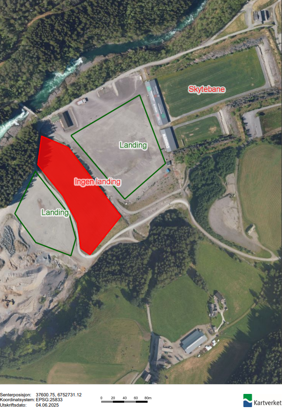 Fast landingsplass er ikkje etablert, men me har avtale om landing på parkeringsplassen til skytebanen. Vi har ikkje løyve til å lande nokon stad på dyrka mark på Bjørke. Me ber om at alle hjelper kvarandre å respektere dette.