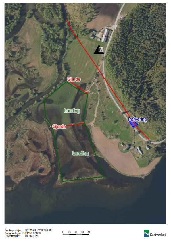 Grunneigar minner om at grindene skal nyttast når ein går frå landingsområdet mot vegen og ikkje tråkka over gjerdene. Det er ynskjeleg at ein pakkar skjerm utanfor beitområdet. Vis hensyn til dyr som beiter på området og land primært der det er kortast gras. Av hensyn til fuglereservatet som ligg ved Lønaøyene, ber me pilotar å fly siste del av innflyginga på nordsida (vekk frå vatnet).